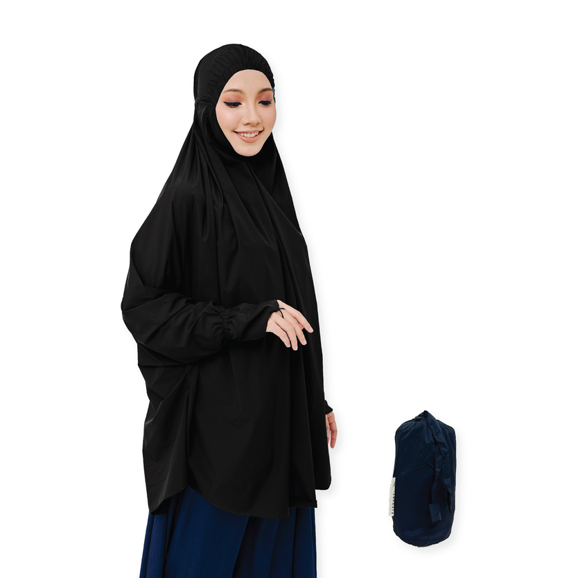 The pouch size is small (13x13cm) and fit well in small size handbags, laptop bags and also cabin luggage bags. The weight is 220g which is equals to about the weight of 1 apple only! You won’t feel the extra weight carrying it around.It comes with a bag + mini prayer mat. All in one!Water resistant. Quick-dry nylon material! Free Size