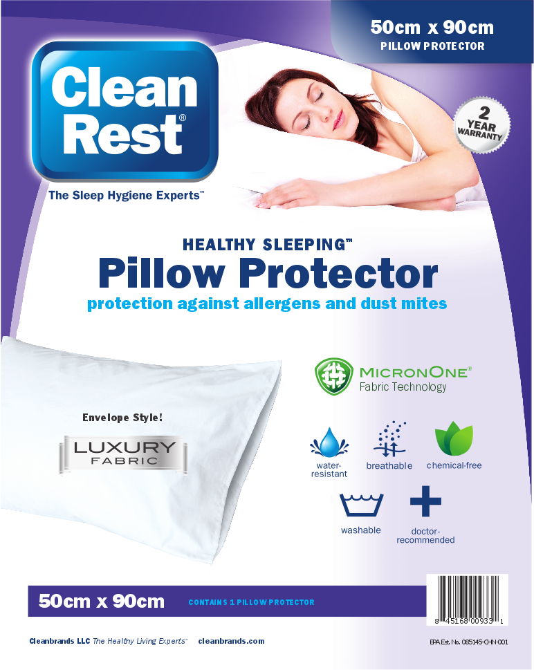 CleanRest’s Envelope Style Pillow Protector helps to provide you and your family with protection against harmful allergens, dustmites, and wetness by utilizing our breathable and patented MicronOne luxury fabric. Dust mites and allergens have beenknown to create havoc in your respiratory system throughout the night resulting in a less than optimal breathing environment and loss of sleep - making our pillow protector a smart choice when seeking to improve your sleep hygiene.Best of all, our Envelope Style Pillow Protector is easy to install and to remove for machine washing.CleanRest Pillow Protector Features:- Best for luxury properties where comfort is a primary performance criteria.- 2-Year commercial warranty- Patented MicronOne fabric technology with MicroLuxe top fabric.- Provides allergen and dust mite protection- Soft, quiet, and breathable fabric - Water-resistant- Hotel quality optic white fabric
